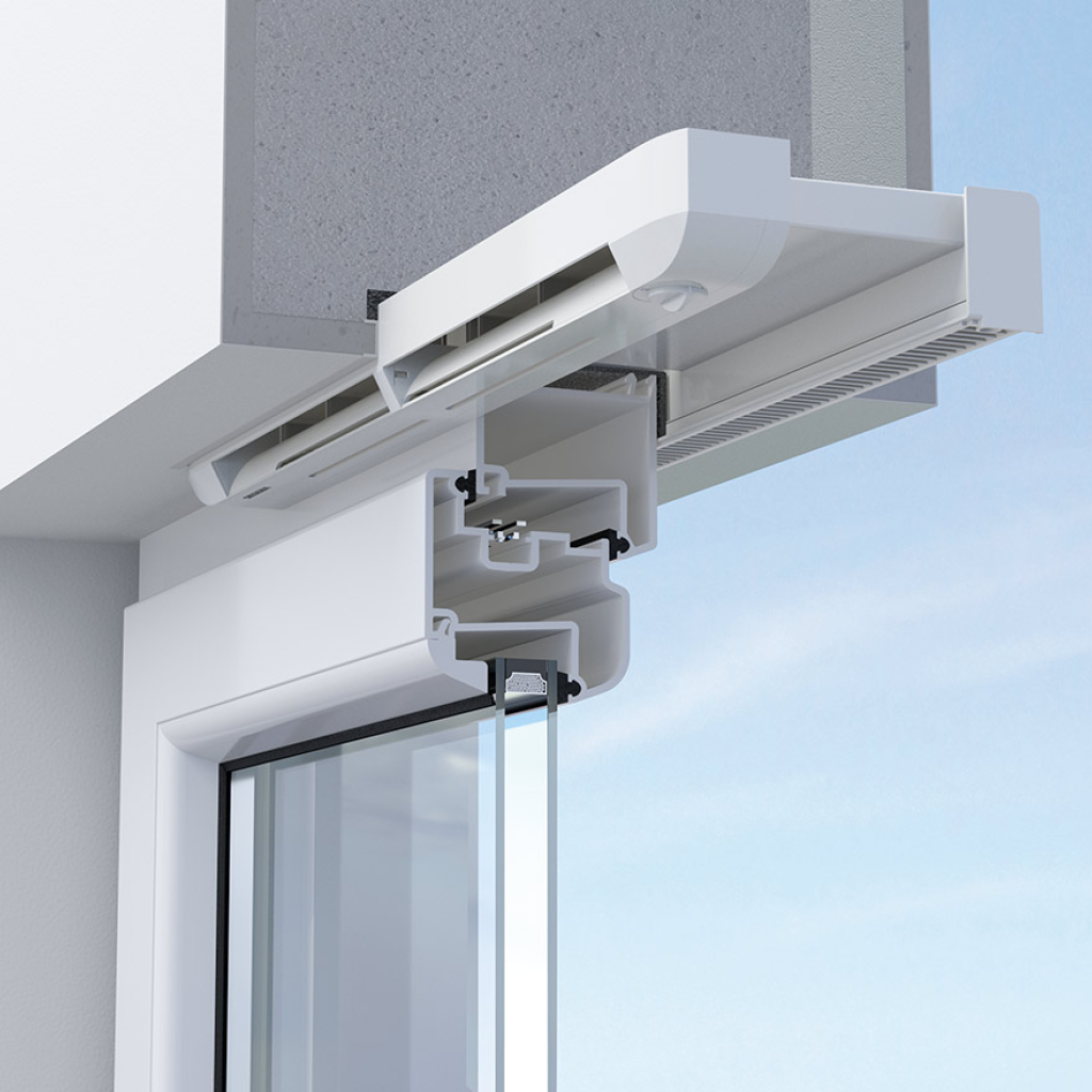 Zariadenie je možné integrovať takmer neviditeľne – či už vodorovne alebo zvisle, samostatne alebo v pároch. Inštalácia pritom nijako neoslabuje akustický útlm ani bezpečnosť okna proti vlámaniu. Prísun čerstvého vzduchu je navyše plynule zabezpečený aj vtedy, keď sú žalúzie či iné tieniace prvky úplne zatiahnuté.